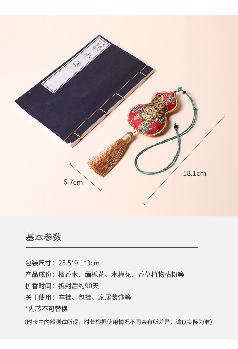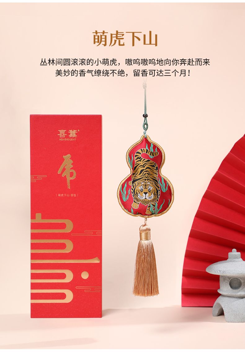 护佑平安:虎在传统文化里是代表吉祥与平安的瑞兽。民间有猛虎下山可护佑平安的说法,佩戴萌虎下山香包能期望它发挥守护作用,抵御邪祟,远离灾祸。同时,其也可用于寄托对佩戴者身体健康,免受疾病困扰的祝愿。例如端午节的虎形香包,就融合虎的象征意义与艾叶等香料的特性,体现求安宁、祈健康的心愿。